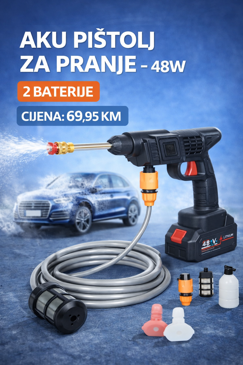 💦 AKU PIŠTOLJ ZA PRANJE – 48W (2 BATERIJE)