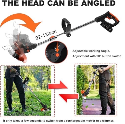 Glava trimera je podesiva tako da se može koristiti ne samo za košenje travnjaka nego i za uređivanje grmlja, grana i drugih nepristupačnih i ukošenih površina bez da se izlažete nepotrebnom naporu.