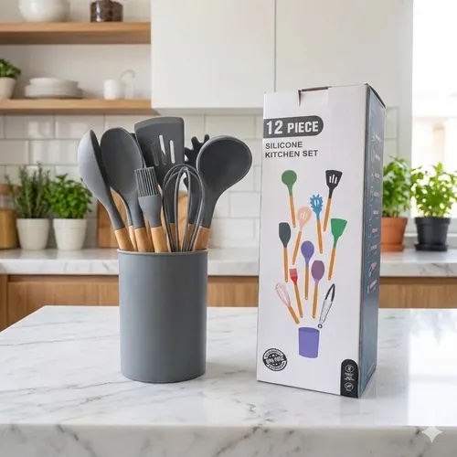 🍴 SILIKONSKI KUHINJSKI PRIBOR – 12 KOMADA 🍴